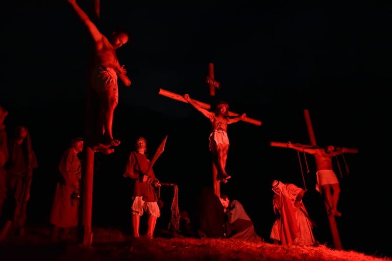 The Sacred Representation of the Passion and Death of Jesus in Erto (PN) is a centuries-old tradition born as a vow against the plague in the 17th century. Every year, on the evening of Good Friday, the town is transformed into an open-air stage: hundreds of costumed figures reenact the Passion of Christ along the streets, accompanied by evocative lights and music. Interrupted only by the Vajont tragedy, the representation is now preserved by the "Sacra Rappresentazione del Venerdì Santo" Association, which continues to perpetuate this unique event of faith, culture, and community.
