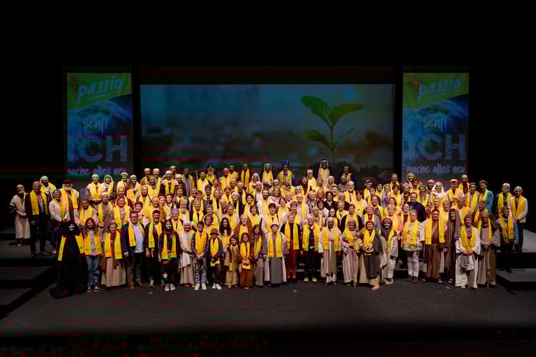 The Schönberg Passion plays in the German-speaking region of Belgium demonstrate parallels. The scenes from the gospel performed by about 50 amateurs transport the spectator to the historical Palestine at the time of Jesus. In a unique way they hold a mirror up in front of today’s people. By showing scenes from everyday life, they raise questions and encourage people to meditation and to a sane dealing with their own faith.